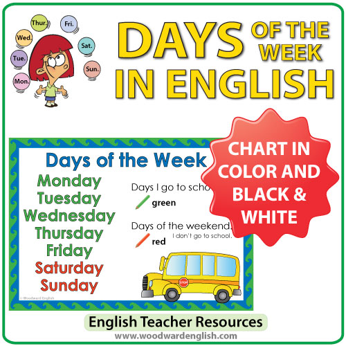 A chart containing the days of the week in English.