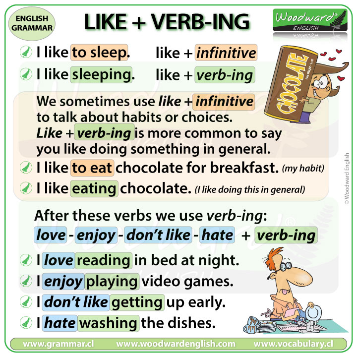 Before we look at like + verb-ing, we need to learn about infinitives.